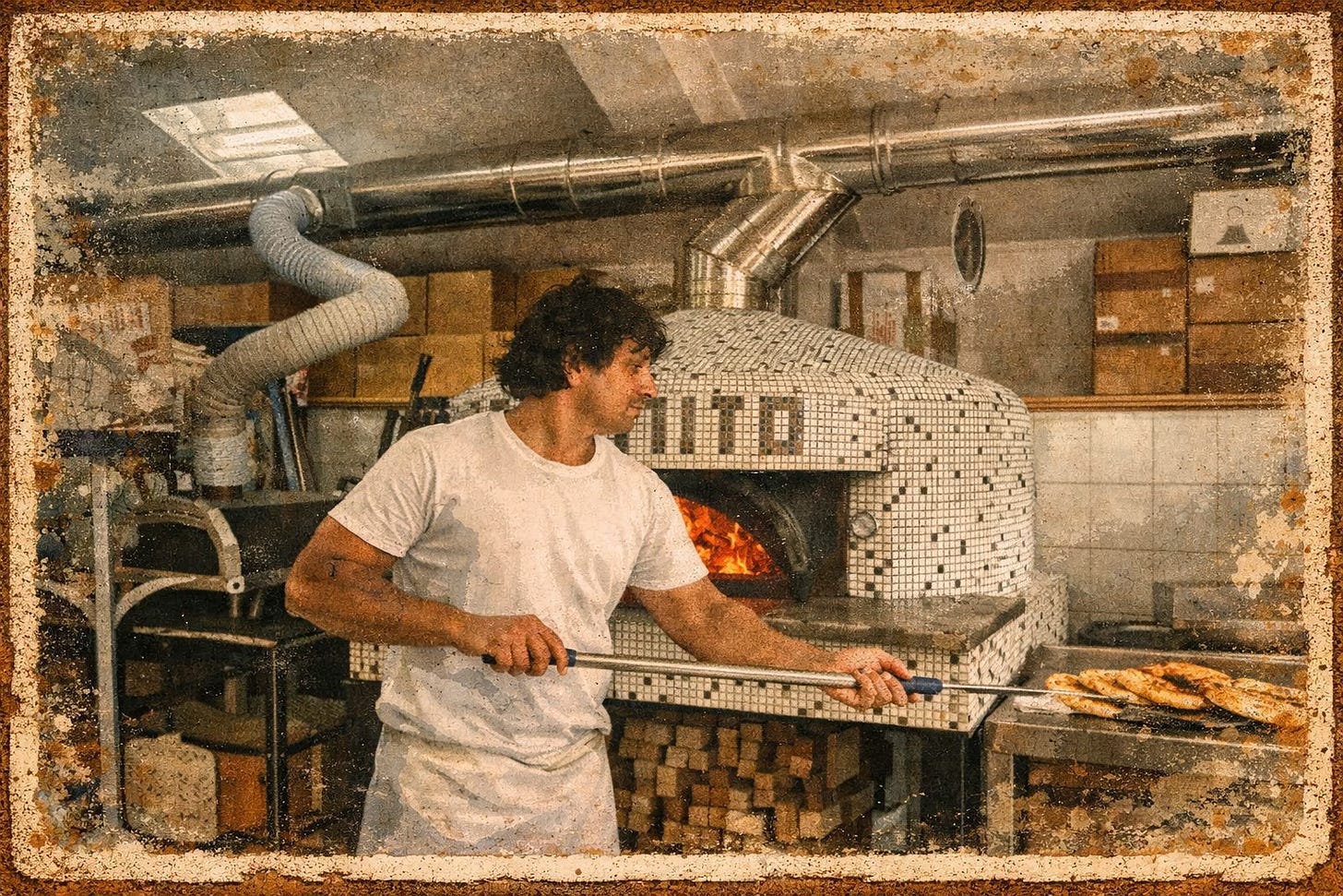Every craft, looked at closely, is an abyss. The closer you get, the deeper it goes. Umberto has devoted his life to a dish whose recipe fits on an index card. That sounds like a punchline. It isn’t. The distance between a forgettable pizza and a transcendent one runs through water pH, through fermentation temperature, through the angle of your wrist when you open the dough, through ninety seconds in a 900-degree oven. Mastery hides inside what looks like simplicity.